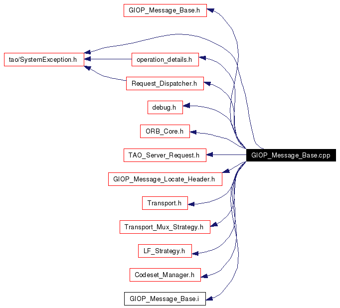 #include "GIOP_Message_Base.h"#include "operation_details.h"#include "debug.h"#include "ORB_Core.h"#include "TAO_Server_Request.h"#include "GIOP_Message_Locate_Header.h"#include "Transport.h"#include "Transport_Mux_Strategy.h"#include "LF_Strategy.h"#include "Request_Dispatcher.h"#include "Codeset_Manager.h"#include "SystemException.h"#include "GIOP_Message_Base.i"Include dependency graph for GIOP_Message_Base.cpp: