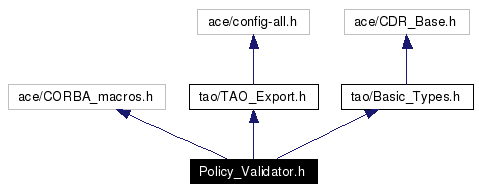 #include "ace/CORBA_macros.h"#include "tao/TAO_Export.h"#include "tao/Basic_Types.h"Include dependency graph for Policy_Validator.h:
