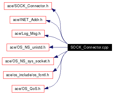 #include "ace/SOCK_Connector.h"#include "ace/INET_Addr.h"#include "ace/Log_Msg.h"#include "ace/OS_NS_unistd.h"#include "ace/OS_NS_sys_socket.h"#include "ace/os_include/os_fcntl.h"#include "ace/OS_QoS.h"Include dependency graph for SOCK_Connector.cpp: