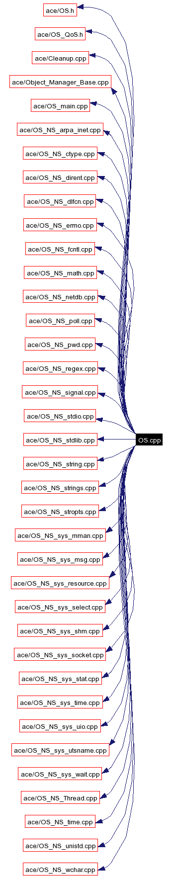 #include "ace/OS.h"#include "ace/OS_QoS.h"#include "ace/Cleanup.cpp"#include "ace/Object_Manager_Base.cpp"#include "ace/OS_main.cpp"#include "ace/OS_NS_arpa_inet.cpp"#include "ace/OS_NS_ctype.cpp"#include "ace/OS_NS_dirent.cpp"#include "ace/OS_NS_dlfcn.cpp"#include "ace/OS_NS_errno.cpp"#include "ace/OS_NS_fcntl.cpp"#include "ace/OS_NS_math.cpp"#include "ace/OS_NS_netdb.cpp"#include "ace/OS_NS_poll.cpp"#include "ace/OS_NS_pwd.cpp"#include "ace/OS_NS_regex.cpp"#include "ace/OS_NS_signal.cpp"#include "ace/OS_NS_stdio.cpp"#include "ace/OS_NS_stdlib.cpp"#include "ace/OS_NS_string.cpp"#include "ace/OS_NS_strings.cpp"#include "ace/OS_NS_stropts.cpp"#include "ace/OS_NS_sys_mman.cpp"#include "ace/OS_NS_sys_msg.cpp"#include "ace/OS_NS_sys_resource.cpp"#include "ace/OS_NS_sys_select.cpp"#include "ace/OS_NS_sys_shm.cpp"#include "ace/OS_NS_sys_socket.cpp"#include "ace/OS_NS_sys_stat.cpp"#include "ace/OS_NS_sys_time.cpp"#include "ace/OS_NS_sys_uio.cpp"#include "ace/OS_NS_sys_utsname.cpp"#include "ace/OS_NS_sys_wait.cpp"#include "ace/OS_NS_Thread.cpp"#include "ace/OS_NS_time.cpp"#include "ace/OS_NS_unistd.cpp"#include "ace/OS_NS_wchar.cpp"Include dependency graph for OS.cpp: