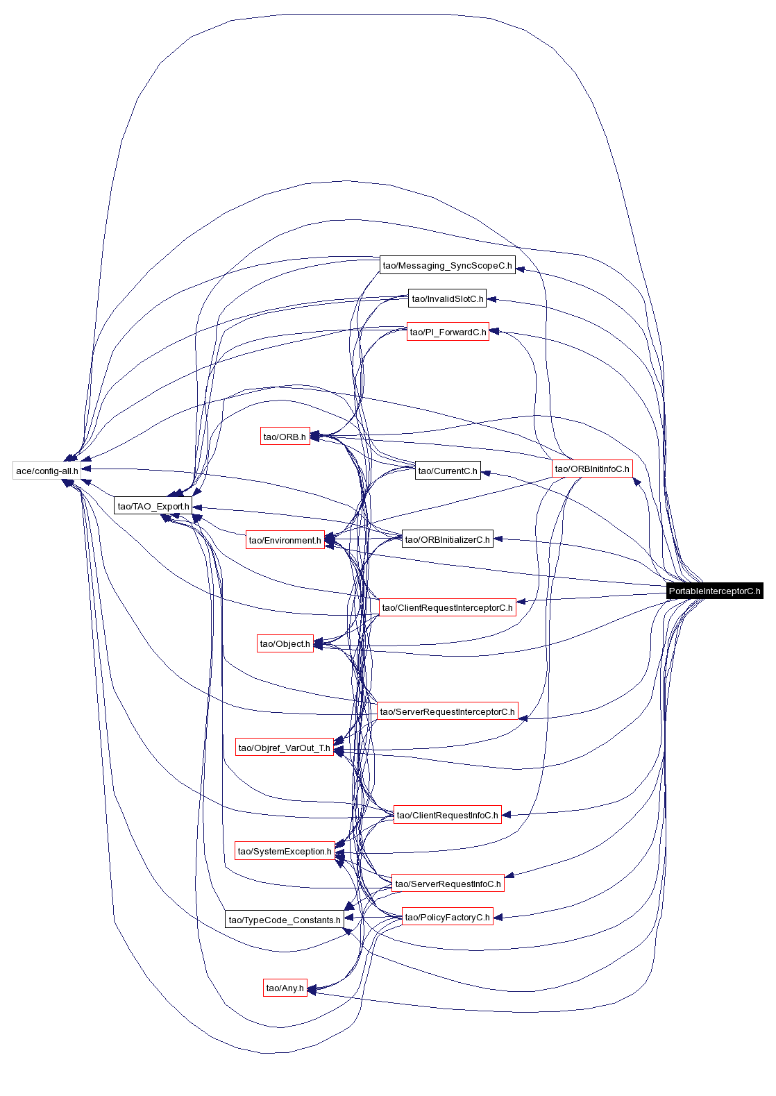 #include "ace/config-all.h"#include "tao/TAO_Export.h"#include "tao/ORB.h"#include "tao/SystemException.h"#include "tao/Environment.h"#include "tao/Object.h"#include "tao/TypeCode_Constants.h"#include "tao/Any.h"#include "tao/Objref_VarOut_T.h"#include "tao/PI_ForwardC.h"#include "tao/CurrentC.h"#include "tao/Messaging_SyncScopeC.h"#include "tao/ORBInitializerC.h"#include "tao/ORBInitInfoC.h"#include "tao/InvalidSlotC.h"#include "tao/ClientRequestInfoC.h"#include "tao/ServerRequestInfoC.h"#include "tao/PolicyFactoryC.h"#include "tao/ClientRequestInterceptorC.h"#include "tao/ServerRequestInterceptorC.h"Include dependency graph for PortableInterceptorC.h: