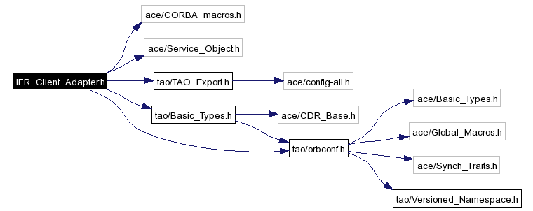 #include "ace/CORBA_macros.h"#include "ace/Service_Object.h"#include "tao/TAO_Export.h"#include "tao/Basic_Types.h"#include "tao/orbconf.h"Include dependency graph for IFR_Client_Adapter.h: