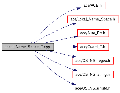 #include "ace/ACE.h"#include "ace/Local_Name_Space.h"#include "ace/Auto_Ptr.h"#include "ace/Guard_T.h"#include "ace/OS_NS_regex.h"#include "ace/OS_NS_string.h"#include "ace/OS_NS_unistd.h"Include dependency graph for Local_Name_Space_T.cpp: