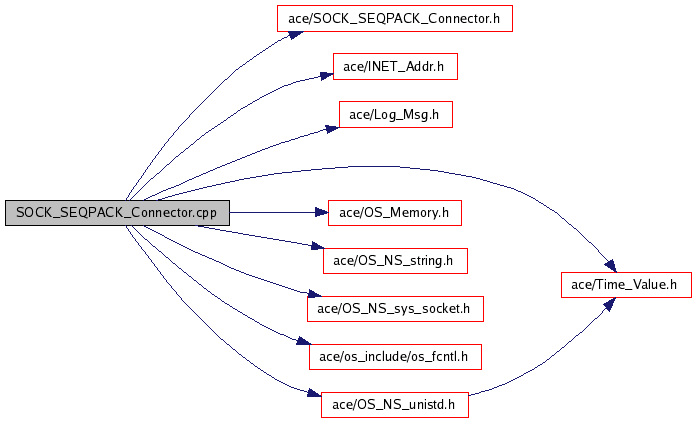 #include "ace/SOCK_SEQPACK_Connector.h"#include "ace/INET_Addr.h"#include "ace/Log_Msg.h"#include "ace/Time_Value.h"#include "ace/OS_Memory.h"#include "ace/OS_NS_string.h"#include "ace/OS_NS_sys_socket.h"#include "ace/os_include/os_fcntl.h"#include "ace/OS_NS_unistd.h"Include dependency graph for SOCK_SEQPACK_Connector.cpp: