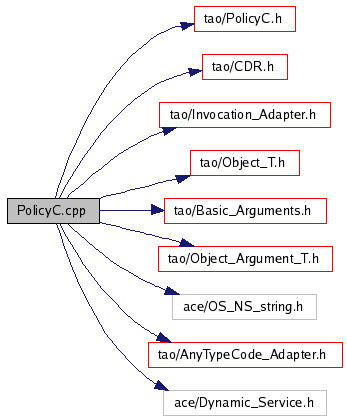 #include "tao/PolicyC.h"#include "tao/CDR.h"#include "tao/Invocation_Adapter.h"#include "tao/Object_T.h"#include "tao/Basic_Arguments.h"#include "tao/Object_Argument_T.h"#include "ace/OS_NS_string.h"#include "tao/AnyTypeCode_Adapter.h"#include "ace/Dynamic_Service.h"Include dependency graph for PolicyC.cpp: