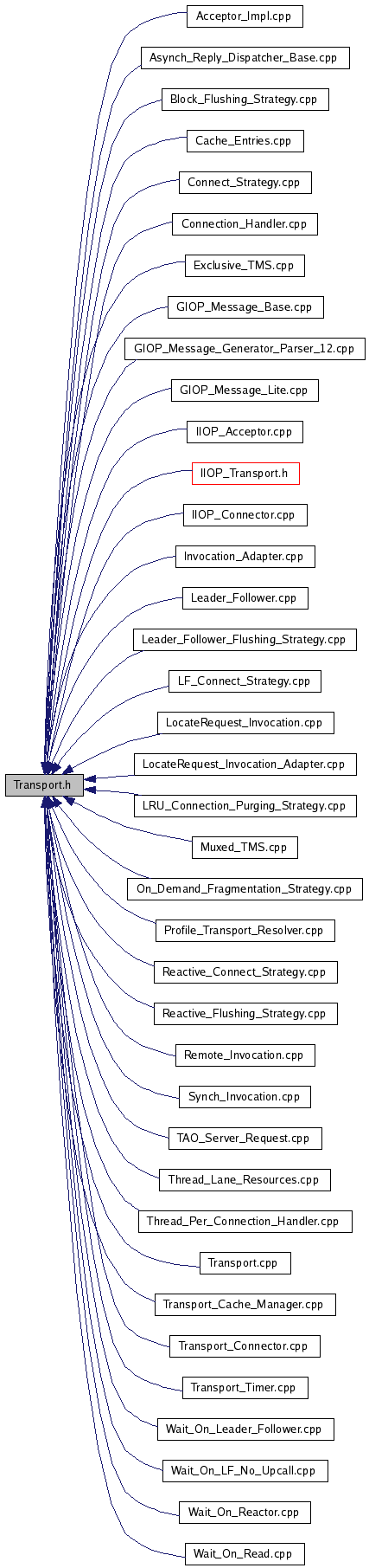 #include "tao/Transport_Cache_Manager.h"#include "tao/Transport_Timer.h"#include "tao/Incoming_Message_Queue.h"#include "tao/Incoming_Message_Stack.h"#include "ace/Time_Value.h"#include "tao/Transport.inl"Include dependency graph for Transport.h: