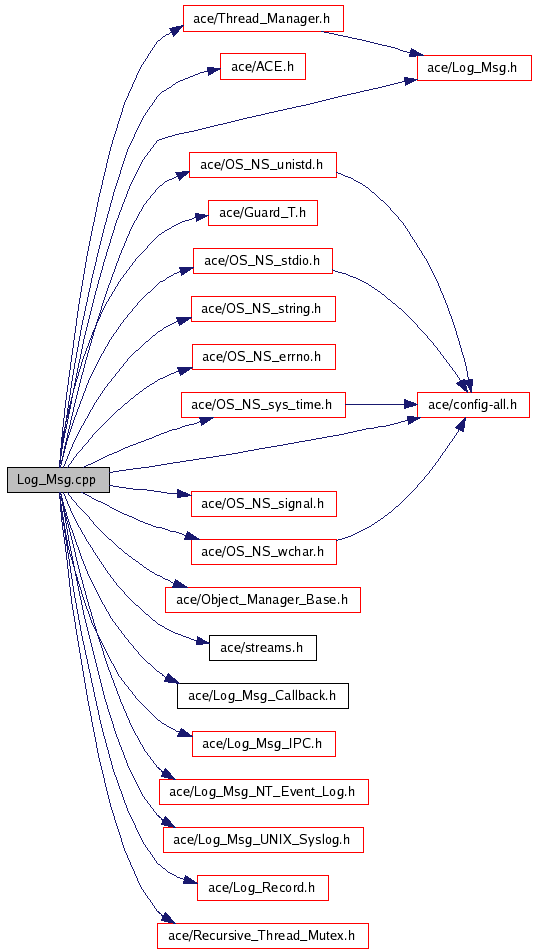 #include "ace/config-all.h"#include "ace/ACE.h"#include "ace/Thread_Manager.h"#include "ace/Guard_T.h"#include "ace/OS_NS_stdio.h"#include "ace/OS_NS_string.h"#include "ace/OS_NS_errno.h"#include "ace/OS_NS_sys_time.h"#include "ace/OS_NS_wchar.h"#include "ace/OS_NS_signal.h"#include "ace/OS_NS_unistd.h"#include "ace/Object_Manager_Base.h"#include "ace/streams.h"#include "ace/Log_Msg.h"#include "ace/Log_Msg_Callback.h"#include "ace/Log_Msg_IPC.h"#include "ace/Log_Msg_NT_Event_Log.h"#include "ace/Log_Msg_UNIX_Syslog.h"#include "ace/Log_Record.h"#include "ace/Recursive_Thread_Mutex.h"Include dependency graph for Log_Msg.cpp: