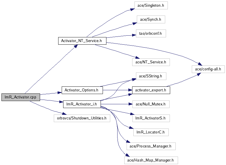 #include "Activator_Options.h"#include "ImR_Activator_i.h"#include "Activator_NT_Service.h"#include "orbsvcs/Shutdown_Utilities.h"Include dependency graph for ImR_Activator.cpp: