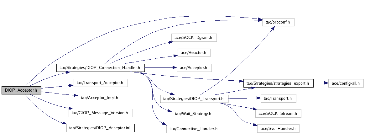 #include "tao/orbconf.h"#include "tao/Transport_Acceptor.h"#include "tao/Strategies/DIOP_Connection_Handler.h"#include "tao/Acceptor_Impl.h"#include "tao/GIOP_Message_Version.h"#include "tao/Strategies/DIOP_Acceptor.inl"Include dependency graph for DIOP_Acceptor.h: