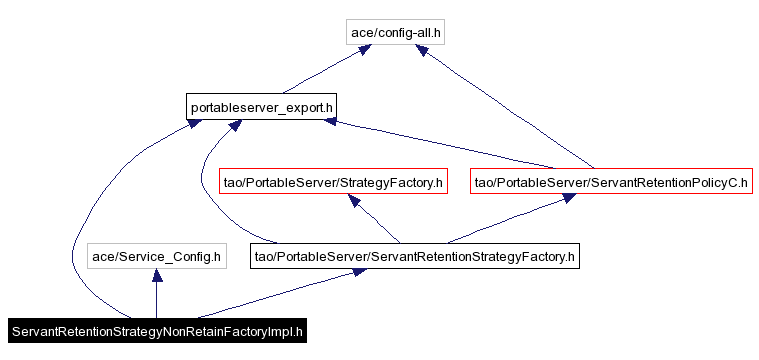 #include "portableserver_export.h"#include "ace/Service_Config.h"#include "tao/PortableServer/ServantRetentionStrategyFactory.h"Include dependency graph for ServantRetentionStrategyNonRetainFactoryImpl.h: