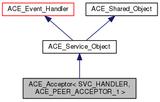 Implements the basic strategy for passively establishing connections with clients. An ACE_Acceptor is parameterized by concrete types that conform to the interfaces of PEER_ACCEPTOR and SVC_HANDLER. The PEER_ACCEPTOR is instantiated with a transport mechanism that passively establishes connections. The SVC_HANDLER is instantiated with a concrete type that performs the application-specific service. An ACE_Acceptor inherits from ACE_Service_Object, which in turn inherits from ACE_Event_Handler. This enables the ACE_Reactor to dispatch the ACE_Acceptor's handle_input method when connection events occur. The handle_input method performs the ACE_Acceptor's default creation, connection establishment, and service activation strategies. These strategies can be overridden by subclasses individually or as a group.