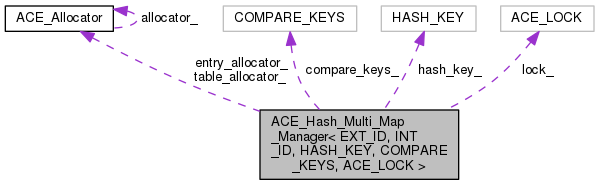 This implementation of a multi-map uses a hash table. Key hashing is achieved through the HASH_KEY object and key comparison is achieved through the COMPARE_KEYS object. This class uses an ACE_Allocator to allocate memory. The user can make this a persistent class by providing an ACE_Allocator with a persistable memory pool.