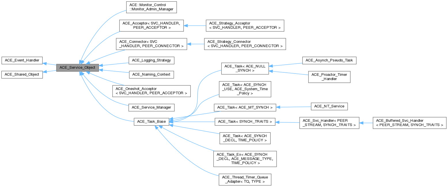 Classes that inherit from ACE_Service_Objects are capable of being registered with the ACE_Reactor (due to the ACE_Event_Handler, as well as being dynamically linked by the ACE_Service_Config (due to the ACE_Shared_Object).