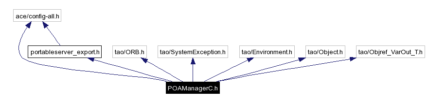 #include "ace/config-all.h"#include "portableserver_export.h"#include "tao/ORB.h"#include "tao/SystemException.h"#include "tao/Environment.h"#include "tao/Object.h"#include "tao/Objref_VarOut_T.h"Include dependency graph for POAManagerC.h: