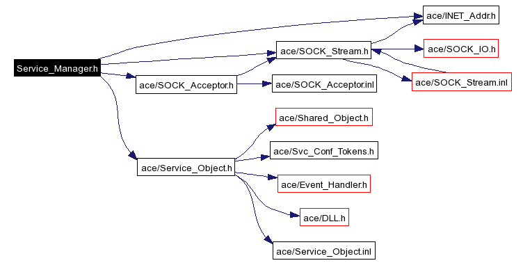 #include "ace/SOCK_Stream.h"#include "ace/SOCK_Acceptor.h"#include "ace/INET_Addr.h"#include "ace/Service_Object.h"Include dependency graph for Service_Manager.h: