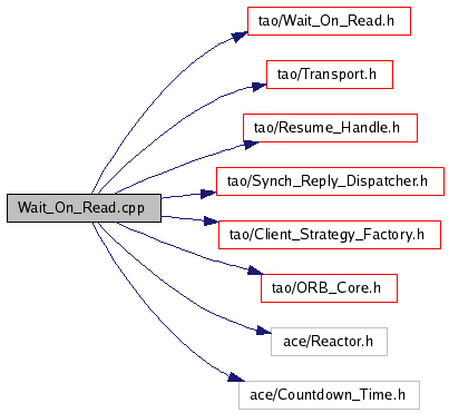 #include "tao/Wait_On_Read.h"#include "tao/Transport.h"#include "tao/Resume_Handle.h"#include "tao/Synch_Reply_Dispatcher.h"#include "tao/Client_Strategy_Factory.h"#include "tao/ORB_Core.h"#include "ace/Reactor.h"#include "ace/Countdown_Time.h"Include dependency graph for Wait_On_Read.cpp: