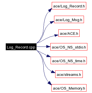 #include "ace/Log_Record.h"#include "ace/Log_Msg.h"#include "ace/ACE.h"#include "ace/OS_NS_stdio.h"#include "ace/OS_NS_time.h"#include "ace/streams.h"#include "ace/OS_Memory.h"Include dependency graph for Log_Record.cpp: